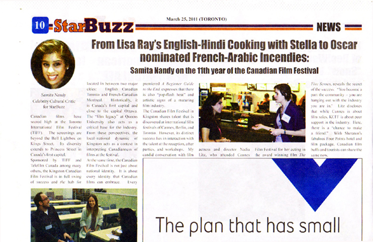 Samita Nandy, Celebrity Cultural Critic (left) and Alison Migneault, Festival Director of TIFF sponsored Canadian Film Festival (right) in an interview and commenting on film talent in celebrity culture